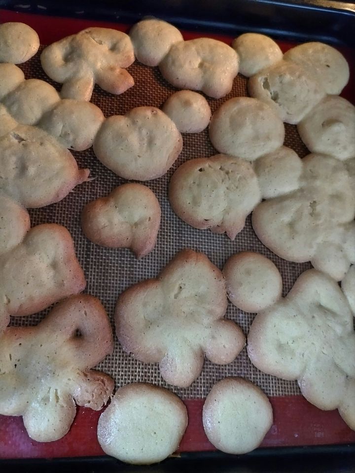 絞りでかわいいモチーフクッキーになるはずが、ふくらんだクッキーは形がわかりにくい状態に。期待していた分「ハァ?」となってしまう気持ちもわかります。でも、ふちがこんがり焼けてふくらんだクッキーは、とてもおいしそうですよね。