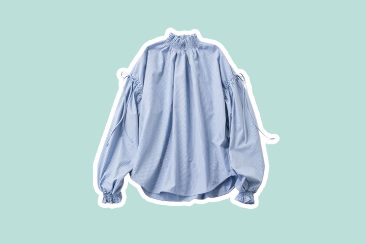 シャツっぽいハリ素材のブラウスなら、甘くなりすぎずお仕事シーンにもOK!¥19,250(ダブルスタンダードクロージング/フィルム)