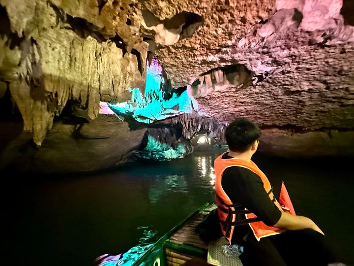 小舟ツアーでは頭を屈めないと通れないような狭い洞窟を通ったり……。