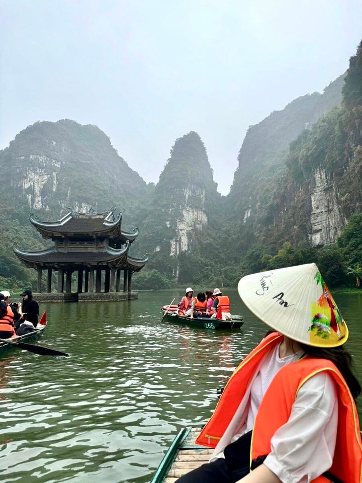 ニンビンはハノイから車で2時間程度のところにある自然と歴史が溢れる古都。映画のモデルやロケ地にもなった、神秘的な風景が広がるエリアです。まずは文化・自然複合遺産の「チャンアン」を小舟に乗って川下り。1時間半かけて船頭さんが水の中に浮かぶ洞窟やお寺を案内してくれます。