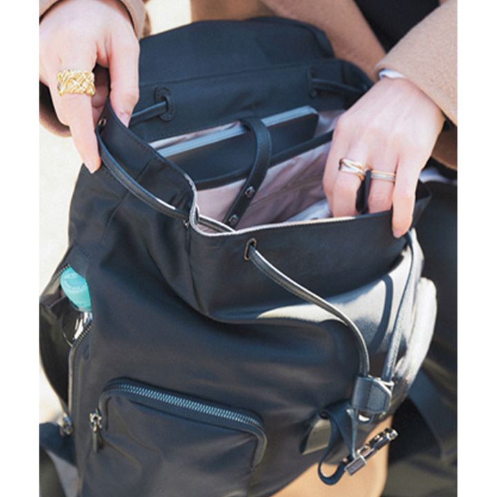 空港で出会ったTUMIのリュック。ペットボトルホルダーの外から見えない作りなど、収納力のスマートさがお気に入り。