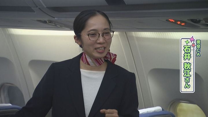 現役CA 石井さん:「いつ何時事故が起こって、飛行機から逃げなきゃいけないってなったときに、安全に逃げられるように足元のスペースや脱出するスペースをしっかり確保できるように声を掛けています」