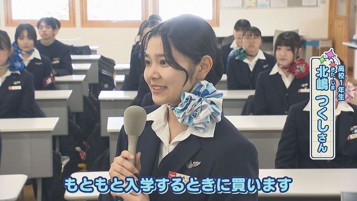 世永アナ:「スカーフは自分で用意する?」北嶋さん:「入学するときに買います。ブルーとピンクがあるんですけど、最初はどちらか買います」