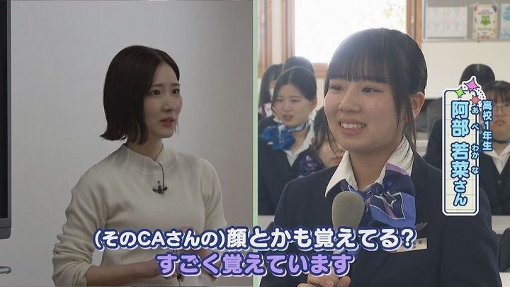 阿部さん:「中3の時の留学で、ビザの取り間違えで飛行機に乗れなかったことがあったんですけど、その時に助けてくれたANAのCAさんを見て、自分もCAになりたいなと思ってこの学校に入りました」