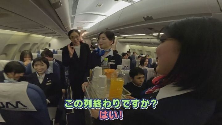 世永アナも「着陸時にリクライニングを直していないお客さん役」で参加!