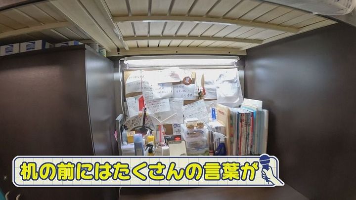 机の前には自分を奮い立たせるためのたくさんの言葉が…