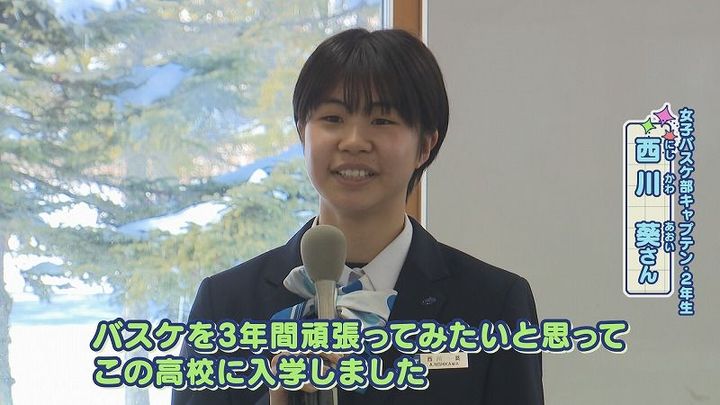 西川さん:「いまの監督が所属していた中学のクラブチームに練習に来てくれた時に、高校でバスケ部を始めるんだという話を聞いて。1年生から試合に出られたり、自分たちで歴史を作れるようなチームでバスケを3年間頑張ってみたいと思ってこの高校に入学しました」