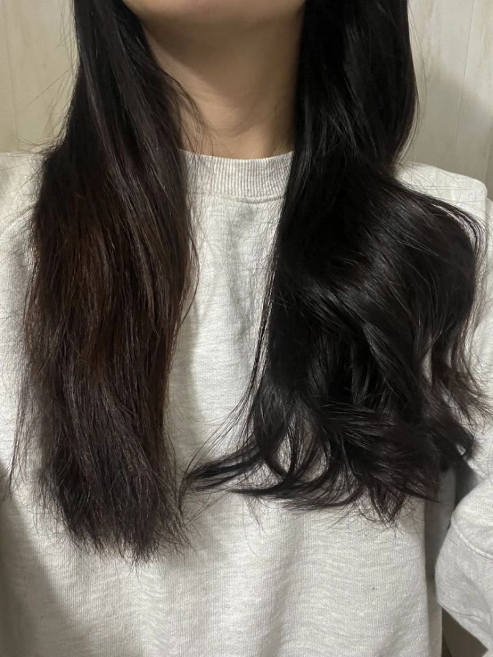 左の髪たけコテで巻き、ラドールで仕上げてみました。一目瞭然!一気にツヤ感出ます♡