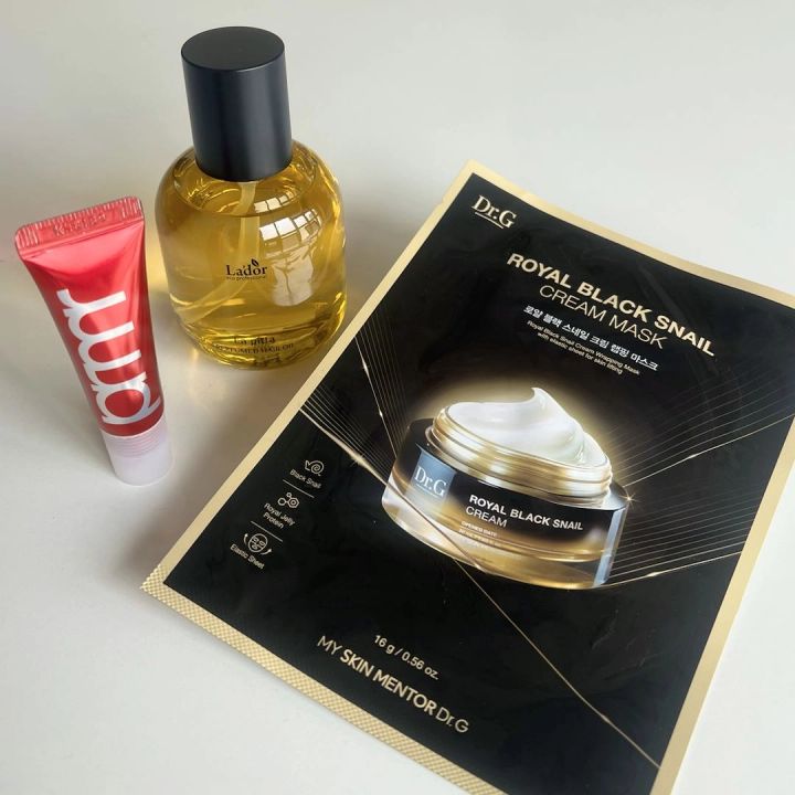 元々ドクタージー  ロイヤル ブラック スネイル クリームを愛用していて、保湿力の高さに感動してこちらもゲットしました。このパックは夜のスキンケアに取り入れると、翌朝の肌がまるで違う!カタツムリエキス配合で、肌に潤いをを与えてくれるシートマスクです。乾燥でくすんだり、疲れて見える肌も明るくもっちりした肌に整えてくれます!