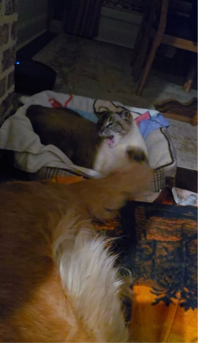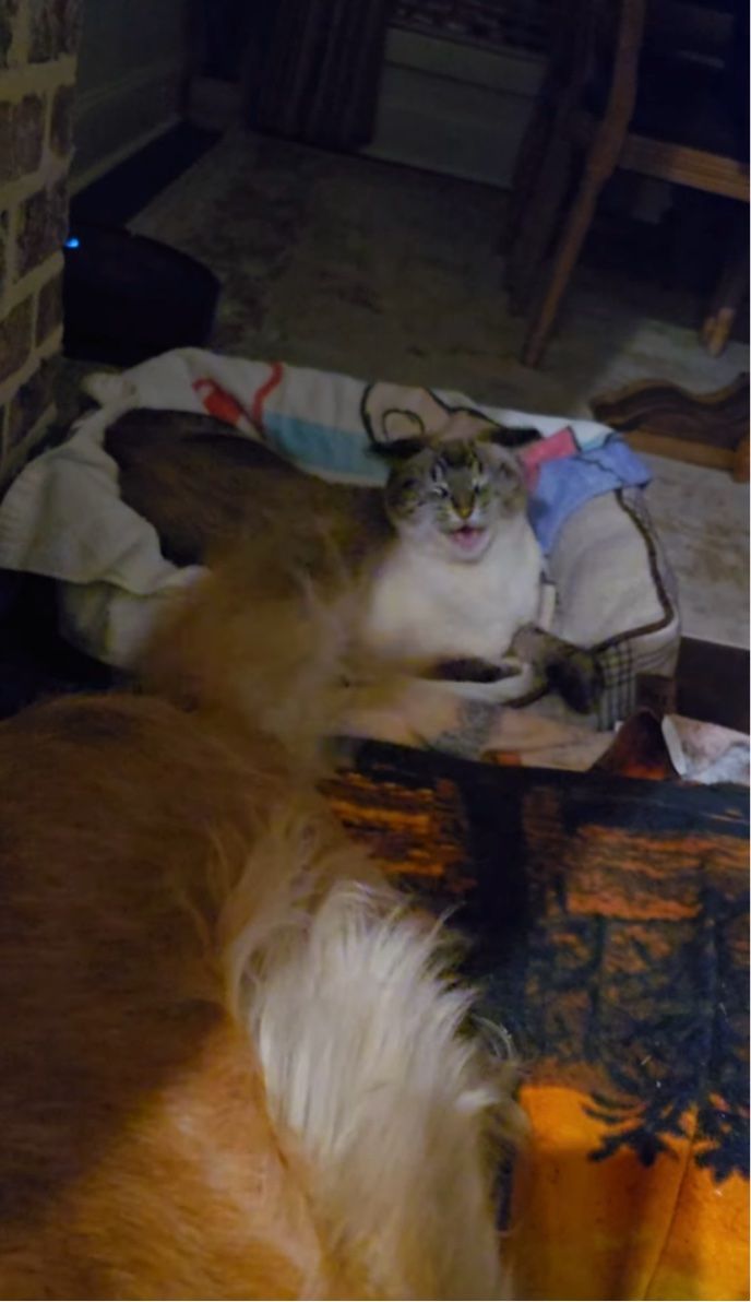 3. イヌの隣でくつろいでいたネコ大迷惑!イヌがブンブン振り回すしっぽが顔を何度もペシペシ【アメリカ・動画】