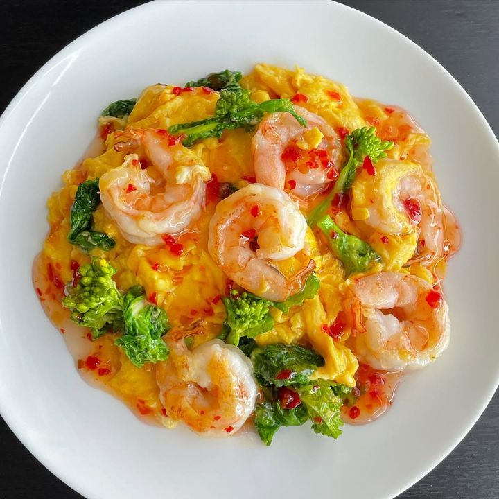 ぷりぷりの海老とふわふわ卵、そしてほんのりほろ苦い菜の花。