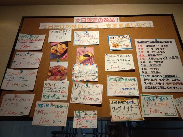 夜ですが、琉球料理+沖縄創作料理、洋風メニューに、今日だけ限定メニューがあります。イタリアン、フレンチ要素たっぷりのメニューも楽しめる「沖縄料理 結まーる グルメ居酒屋」なんですよ♪