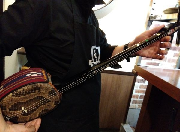 「備え付けの三線で無料体験もしてください。ディナータイムには、15分で弾けるようにお教えしますよ」と、店主さんより。