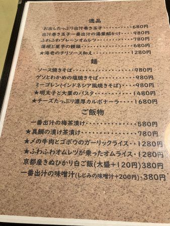 お昼の時間帯でも注文可能!ただお通し代が追加されます。