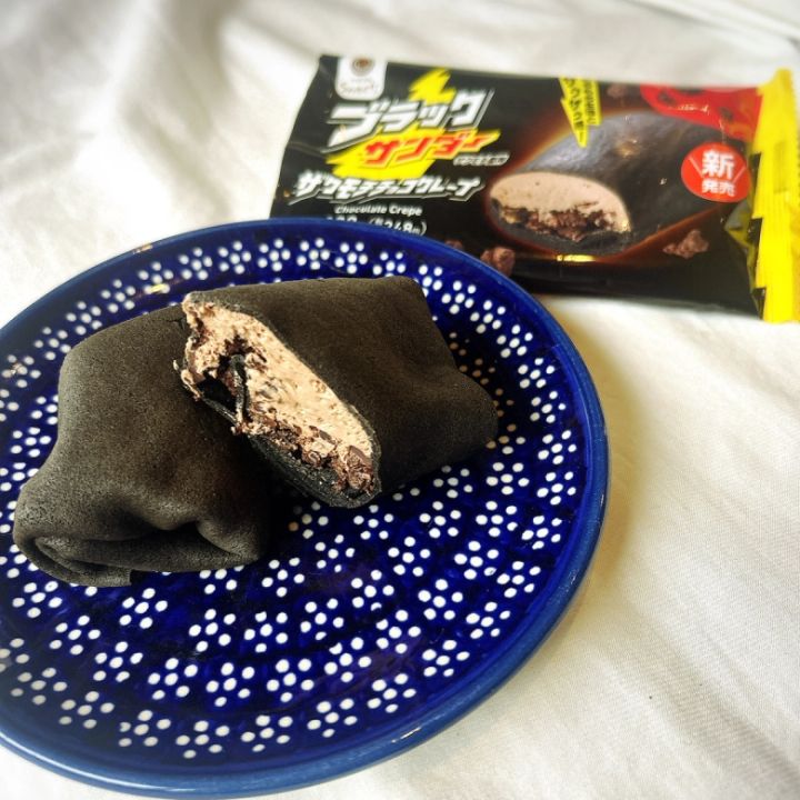 こちらも今年初登場の「ブラックサンダーザクモチチョコクレープ」。真っ黒な見た目のクレープです。もちもちとしたクレープ生地の中には、チョコクリームとクランブルが!もちもち&ザクザク触感のバランスが絶妙です♡