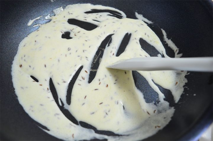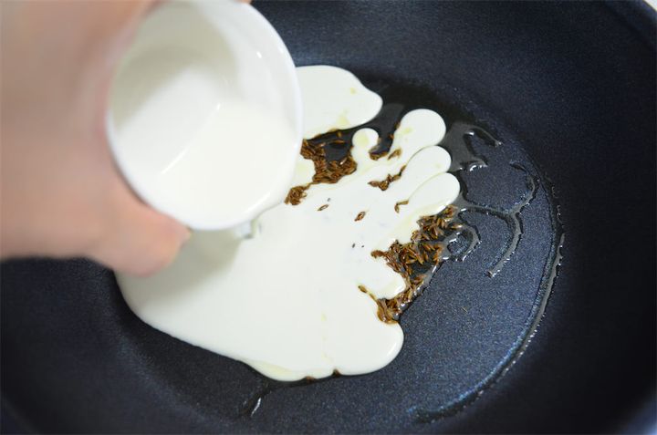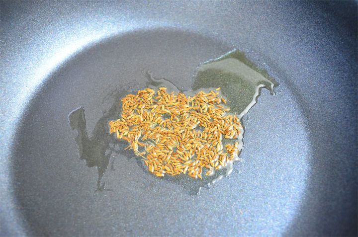低温の油でじっくりクミンの香りをオイルに移しましょう。焦がさないよう注意!
