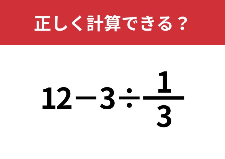 3. 分数の計算は覚えてる?「12−3÷1/3」正しく計算できる?