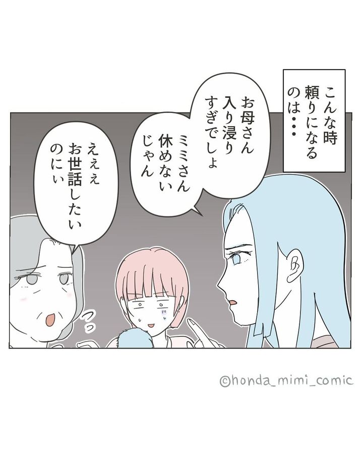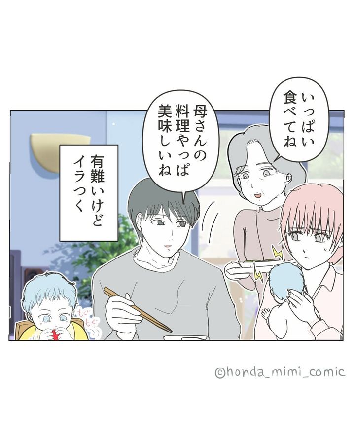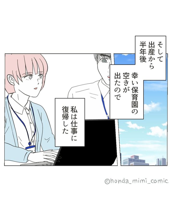 産後、義母が手伝いに来てくれますが、息子のカケルを甘やかしたり、夫のワタルと仲がよすぎたり。いつでも行動できるように、出産から半年後に仕事に復帰したミミなのでした。