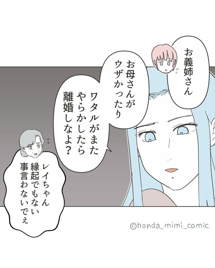 コメント欄には、「お姉さんかっこよ」「さらりと『離婚しなよ?』って言ってくれるお姉さん好き」といった声が寄せられていました。頼りになるレイに感心した読者が多いようですね!