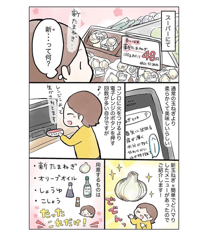 2. スーパーにて『新玉ねぎ』を買った女性→“5分チン”すればできる美味しいレシピに「春、永遠に続いてくれ」