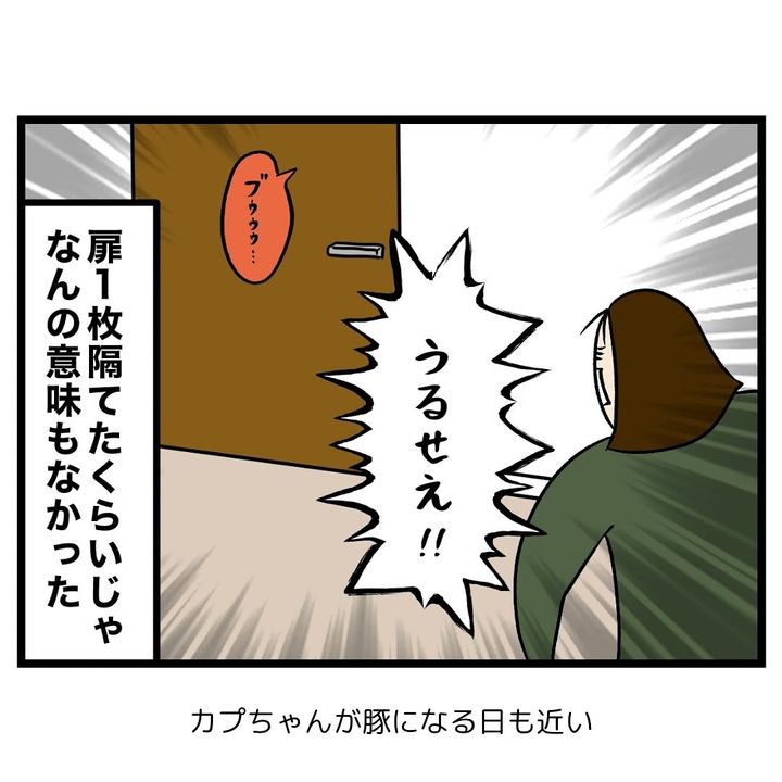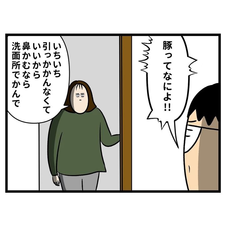 カバさんは声が小さいそうですが、くしゃみや鼻をかむ音はとても大きいそうです。洗面所に隔離して鼻をかませますが、扉1枚隔てただけでは意味がないのでした。