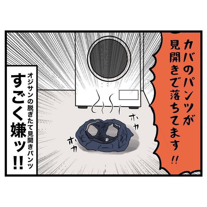 悲鳴をあげるこめ美ちゃんの、恐ろしい物を見たような表情が面白く、思わず吹き出してしまいました!「オジサンの脱ぎたて見開きパンツ」という表現も笑いを誘います。