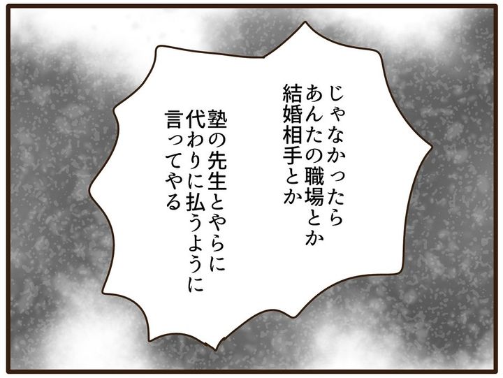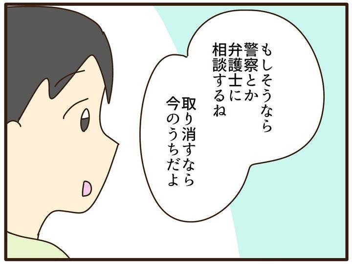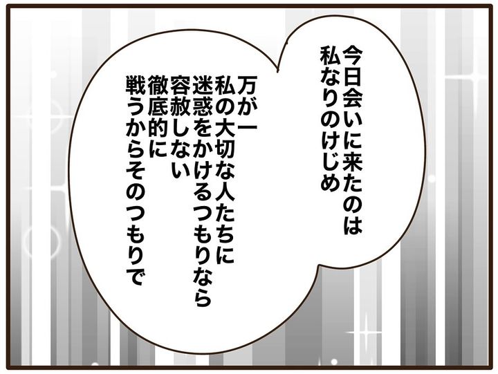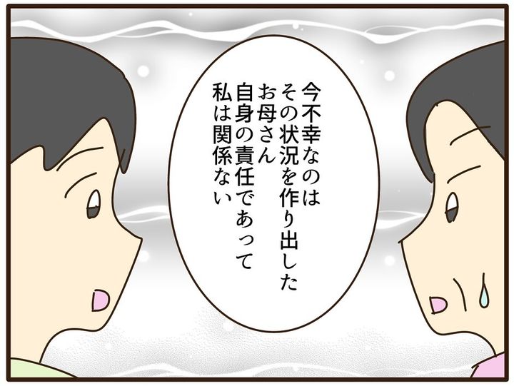 「産んでくれたことは感謝してる」、でも「自分が大人になったことで、あらためて私の子供時代はおかしかったって気づいた」と伝えるも、お母さんには全く話が通じません。それどころか「どうしても縁を切りたいなら、お金を払いなさいよ!」と脅してきました!それに対し、しおりさんは毅然とした態度で「それって脅迫してる?」「徹底的に戦うからそのつもりで」と言い放つのでした。