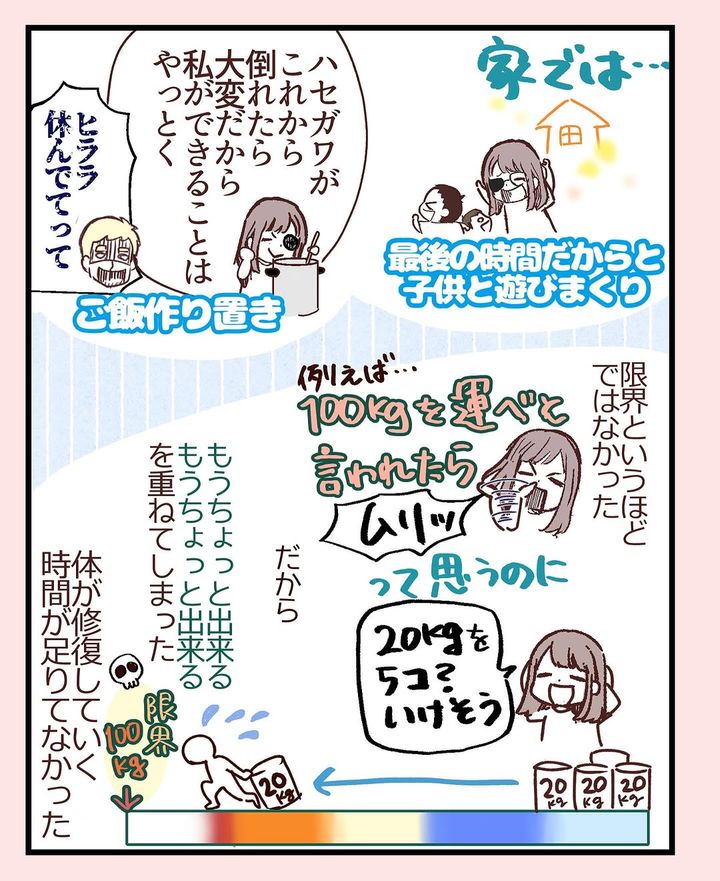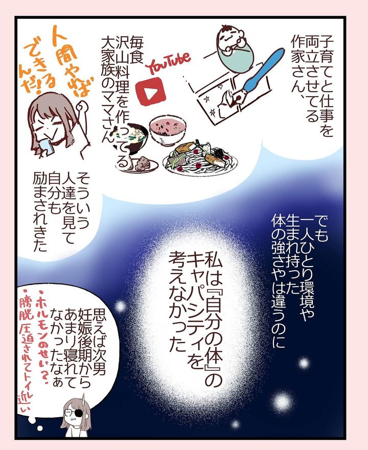 入院中に、これまでの生活を振り返った夏目ひららさん。知らず知らずのうちに無理を重ね、自分のキャパシティを超えていたことに気づいたのでした。