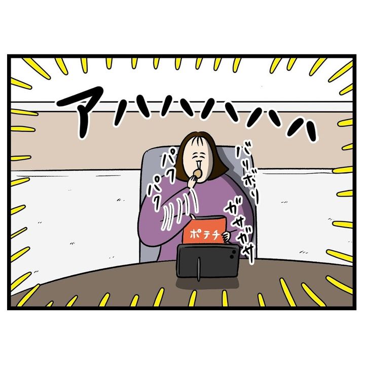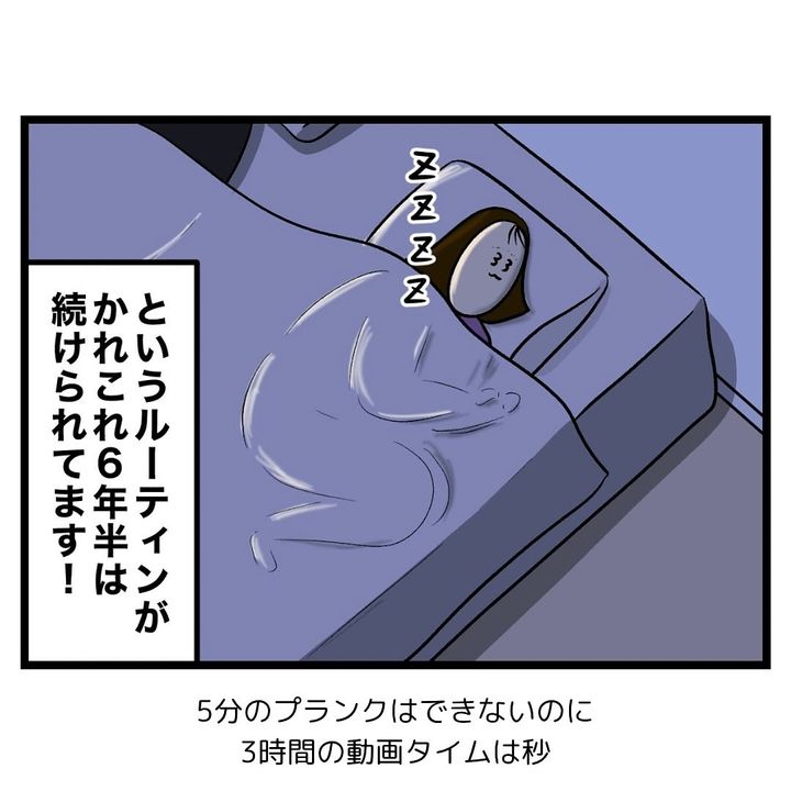 プランクをするために、動画を見始めようとするノンノさん。しかし、ついつい別の面白そうな動画をクリック。スナック菓子を片手に、さまざまな動画を楽しんでいるうちに、気づけば時刻は深夜0時。そんな夜のルーティンを、かれこれ6年半も続けているのでした。