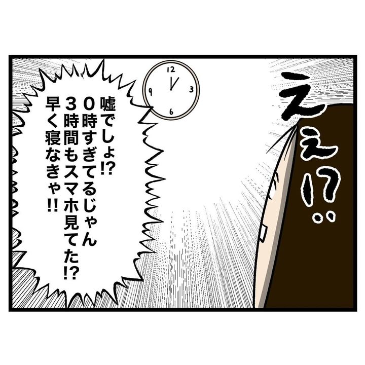 夢中になって動画を観ていると、本当に時間は一瞬ですよね。「嘘でしょ!?0時すぎてるじゃん!3時間もスマホ見てた!?早く寝なきゃ!!」と慌てるノンノさんの姿がコミカルで、思わず笑ってしまいます。