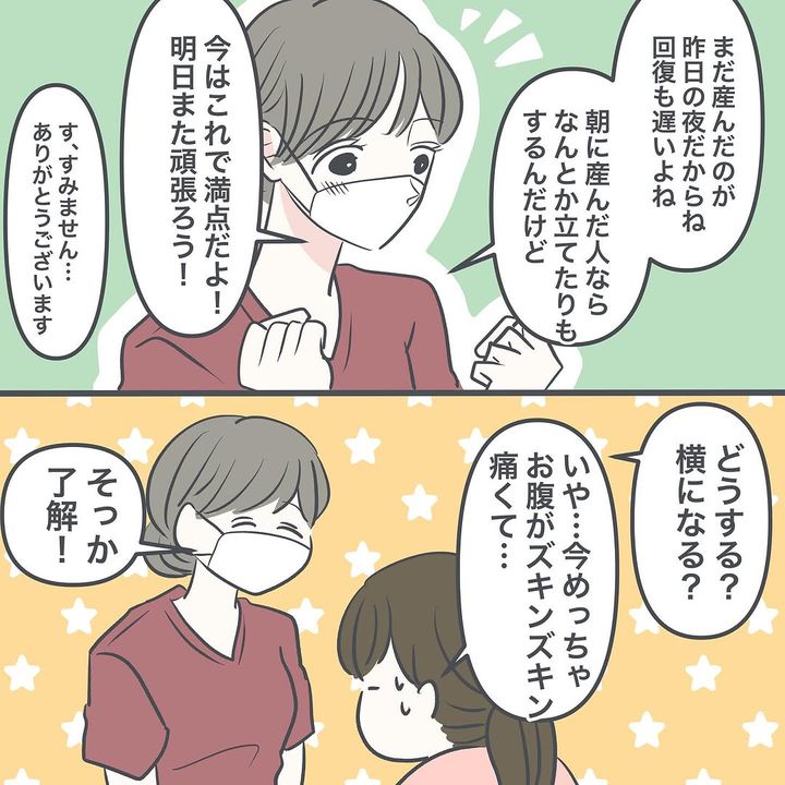 2. 「無理、限界です!」帝王切開後のリハビリをする女性→その後、激痛を和らげてくれた出来事とは?