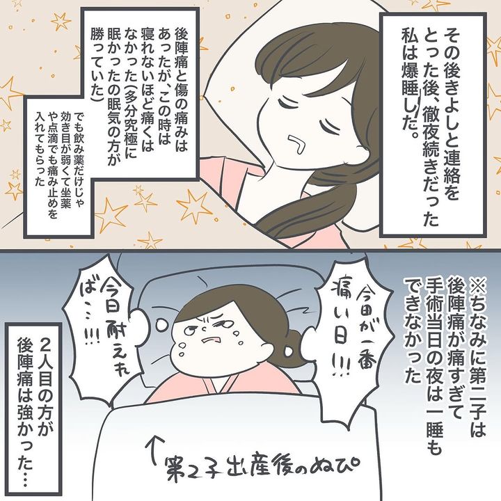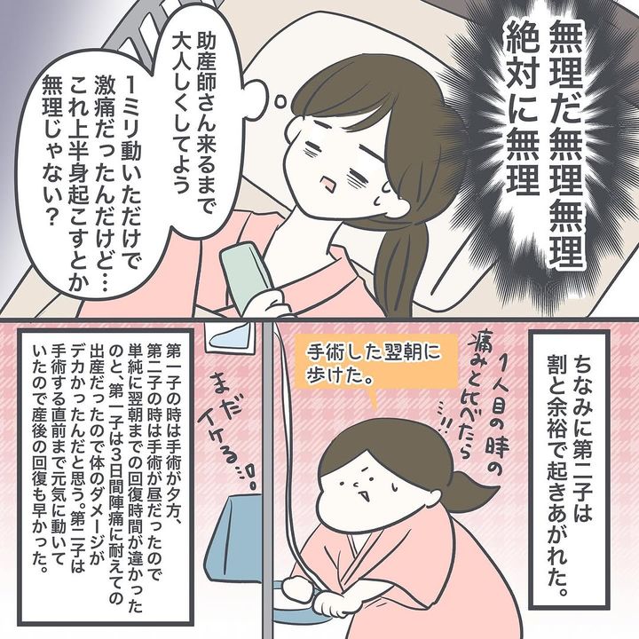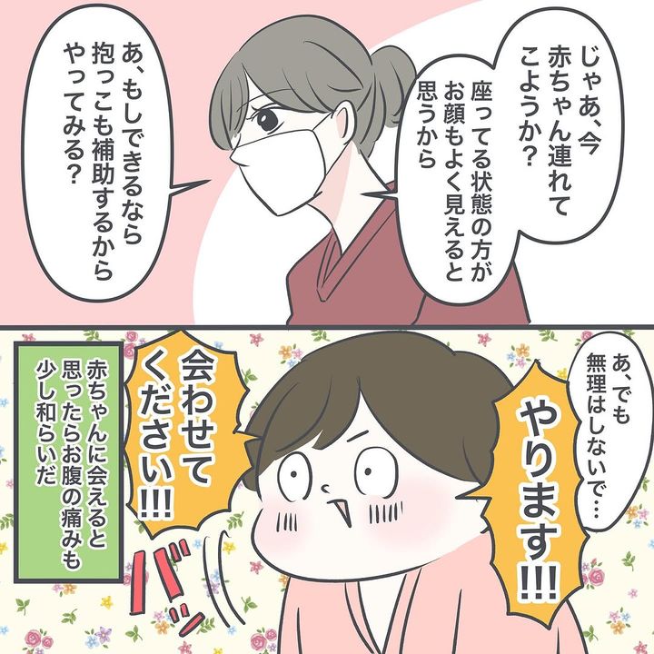 帝王切開は、出産後も強い痛みと戦わなければなりませんよね。「やります!!!会わせてください!!!」と、前のめりになるぬぴさんが印象的です。