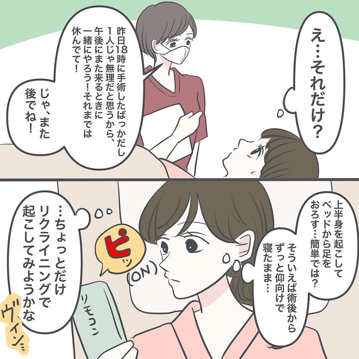 コメント欄には、「私も帝王切開組です!(逆子)術後痛いですよねぇ」「私も帝王切開術で出産しました。術後リクライニングで体を起こすのも一苦労ですよね」といった声が寄せられていました。ぬぴさんの体験に共感した読者が多いようですね!
