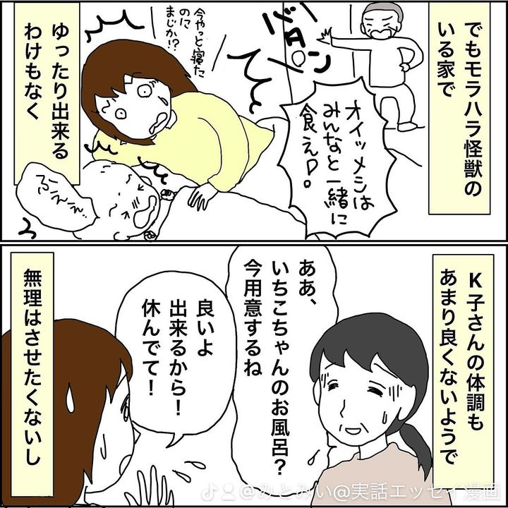 乳児がいるのにタバコを吸ったり、寝かしつけをしている最中に大声で怒鳴られたり、父の言動はいただけませんね。だからこそ、夫にはやさしい言葉をかけてほしいものですよね。