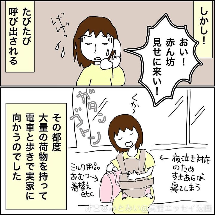 産後は実家に帰ることにしたアサ子。しかし、モラハラ気質の父のせいで心身ともに休まらず、アパートに戻ることに。そんな時に掛けられた夫の冷たい言葉に、父と夫が重なって見えたのでした。