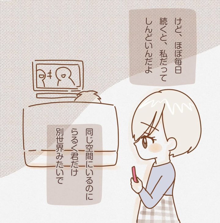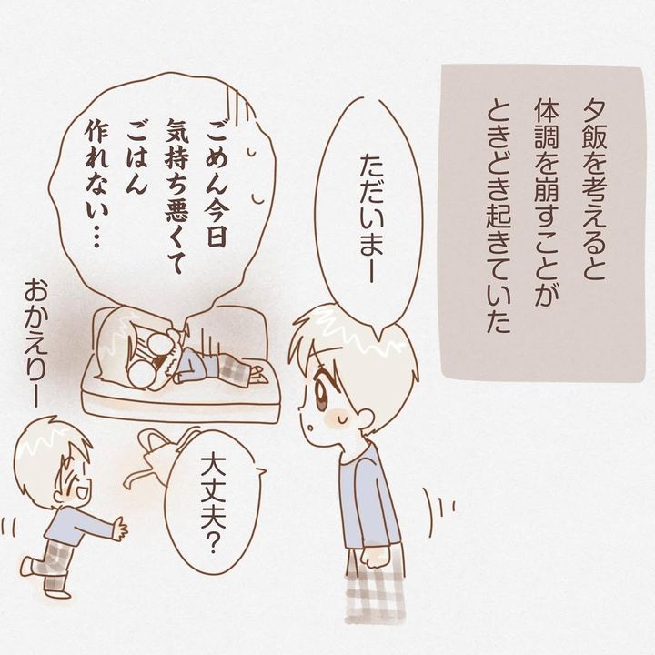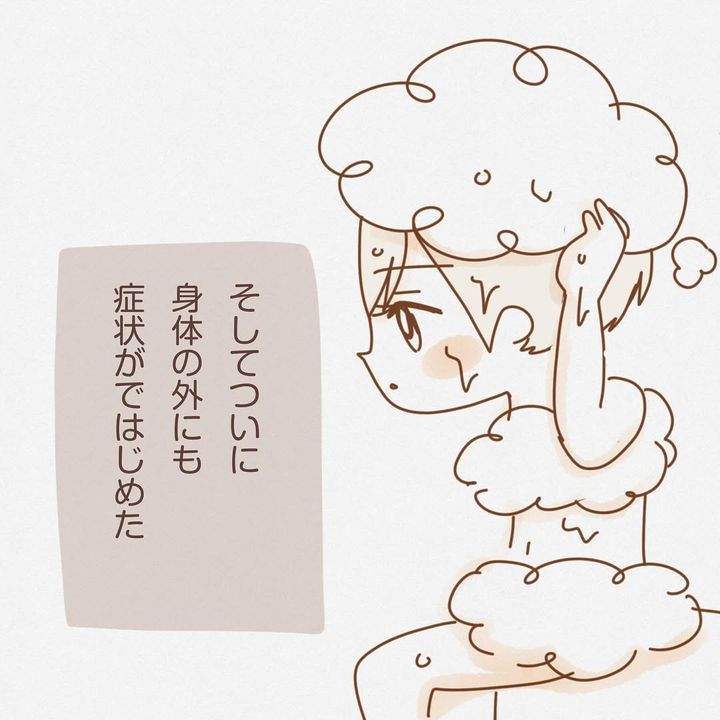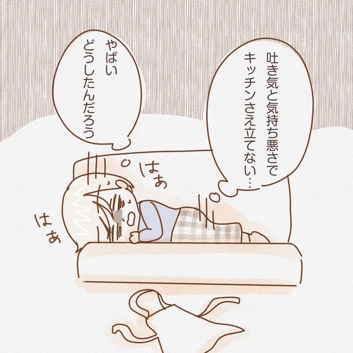 子育てに積極的でない夫・らるく君に気を遣い、育児や家事を頑張っていたしるくさん。しかし、そんな生活を続けていると、吐き気やのどの違和感、抜け毛など、さまざまな症状が現れ始めました。