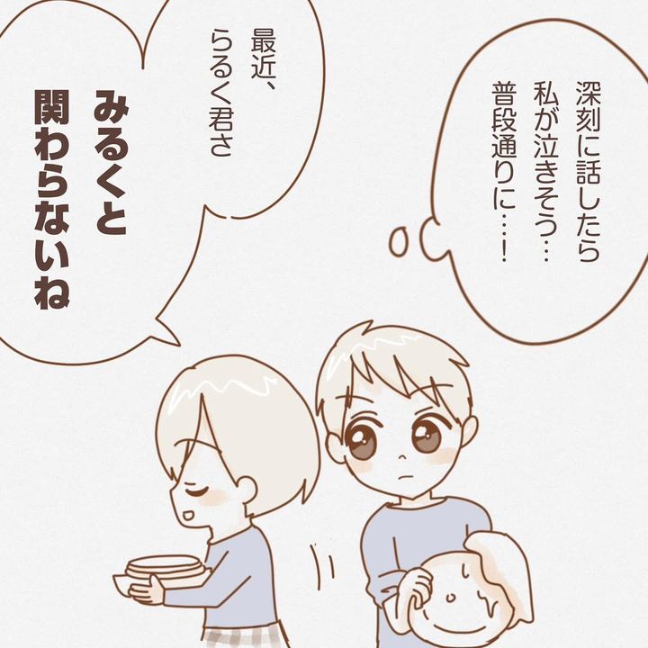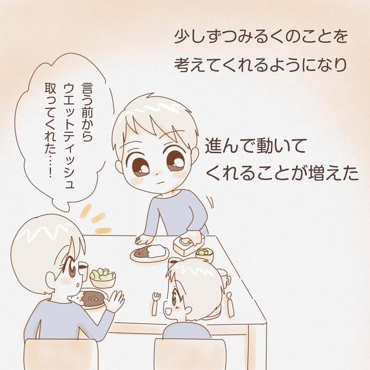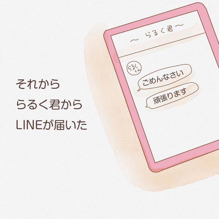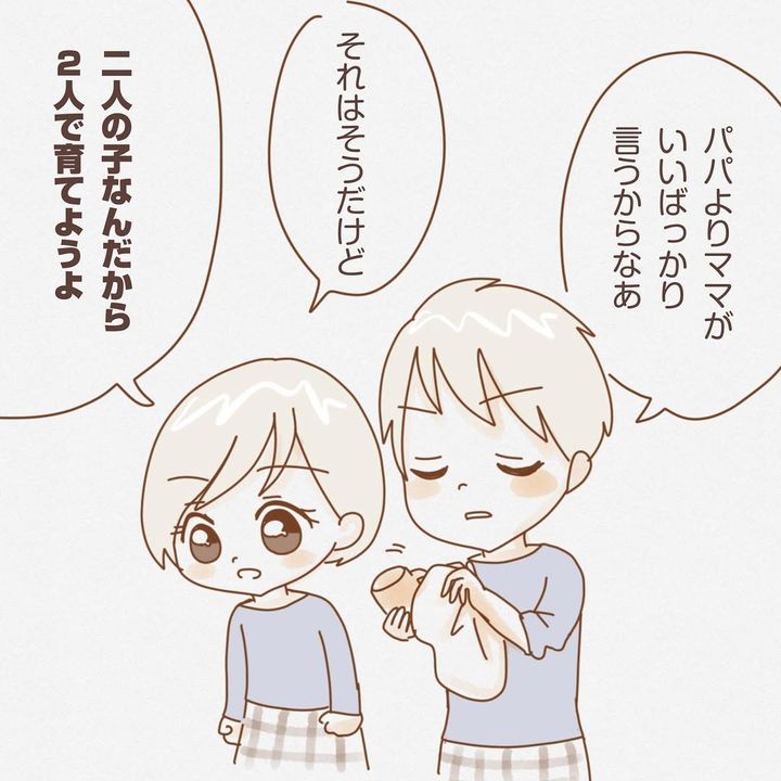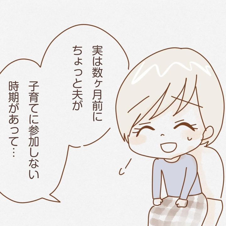 子育てに参加してほしいと、勇気を出して夫のらるく君に伝えたしるくさん。らるく君は素直に謝り、以後、少しずつ子育てに積極的に参加してくれるようになりました。
