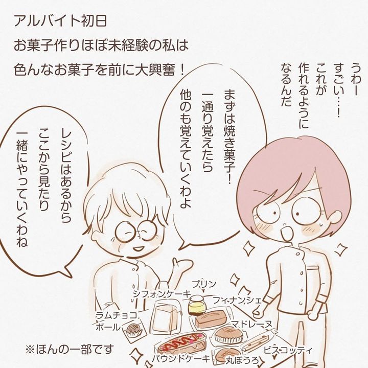 しるくさんは、「お菓子作り初心者の私色んな壁にぶち当たりました…専門職の世界は凄かった……たまたま下着屋さんでは素敵な店長に恵まれただけかもしれませんが、ケーキ屋さんにいた時も、今、子育てしていても、店長とよく仕事をしてる夢をよく見ます。それくらい憧れで楽しかった職場なんだなあと、改めて思いました」とコメント。前職の店長はよほど素敵な人だったのですね!
