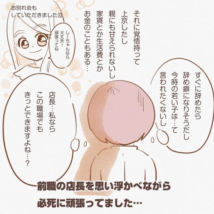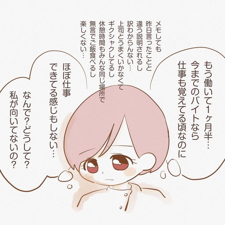 洋菓子店でアルバイトを始めますが、2人の上司の言っていることが違い、間に挟まれることに。仕事を楽しいと感じられず、前職の店長を思い浮かべながら、必死に頑張るのでした。