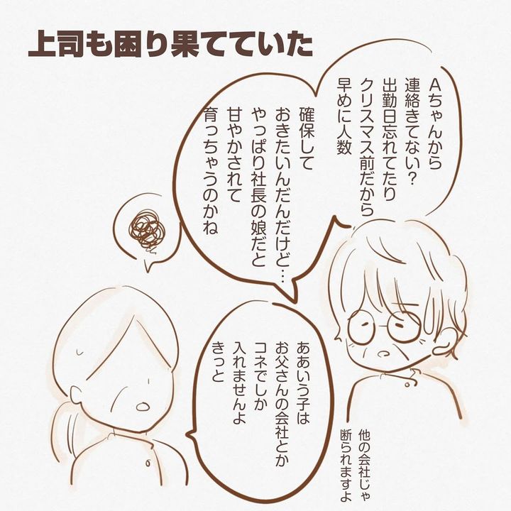 新人アルバイトの女性が変わり者だったようで、作業台に肘をついて作業したり、出勤日を忘れたり。これには上司も手に負えないのでした。