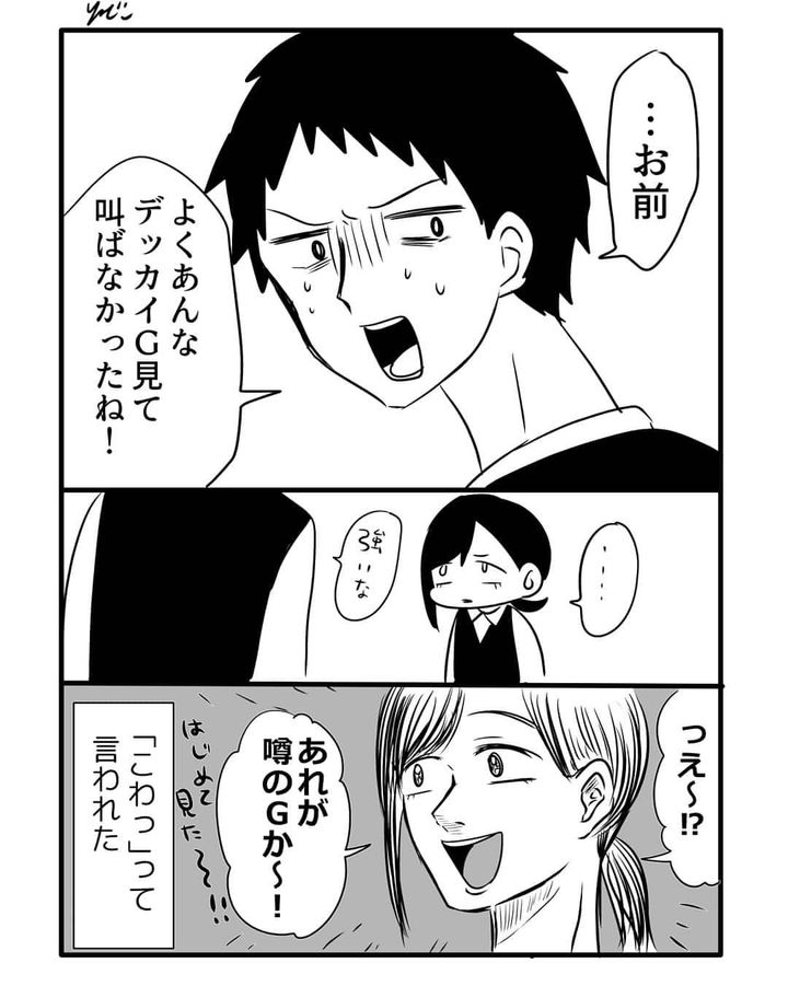 カブトムシだと信じて疑わなかった園山さん。だからこそ、驚くことも叫ぶこともなかったのかもしれません。一方で、害虫だと気づいたアルバイト仲間の愕然とした表情が印象的です。