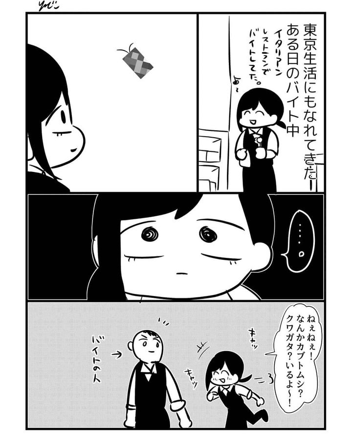 イタリアンレストランでアルバイトをしていた園山千尋さん。ある日、壁にカブトムシがとまっているのを発見し、アルバイト仲間に報告します。ところが、それは“あの害虫”だったのでした。