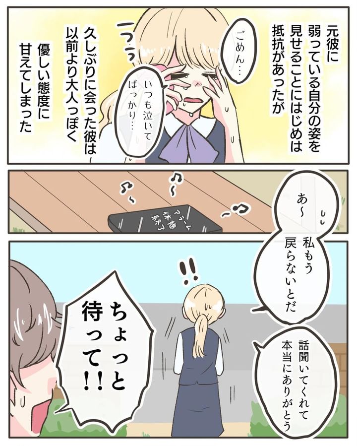 辛い仕事をしているときに、話を聞いてくれる元恋人が現れたら、心が揺れ動くのも無理はありません。職場の環境もあまり良さそうではないので、思い切って辞めてしまうのも選択肢としてはアリかもしれませんね。