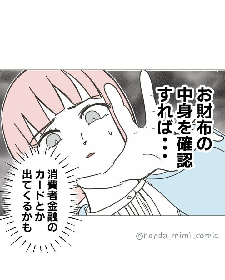 ミミは夫・ワタルの借金の証拠を掴むために、以前使っていたスマートフォンで履歴を確認しました。その結果、3百万以上の借金があることが判明したのでした。