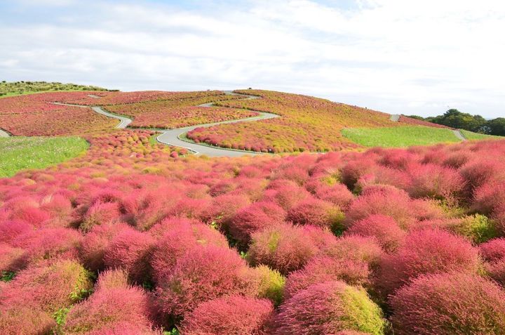 Spot.1【9月中旬~10月上旬】移りゆく絶景!奇跡の「グラデーションコキア」/国営ひたち海浜公園(茨城県/ひたちなか市)