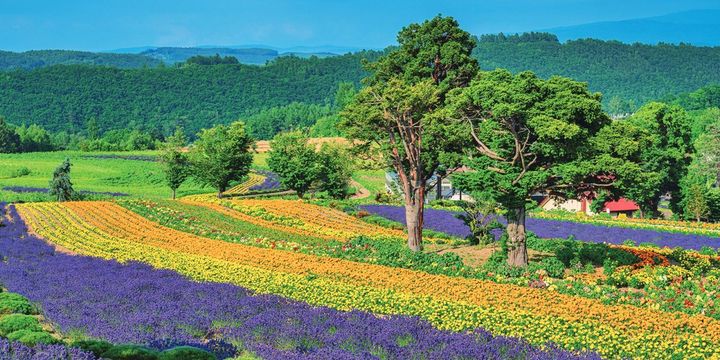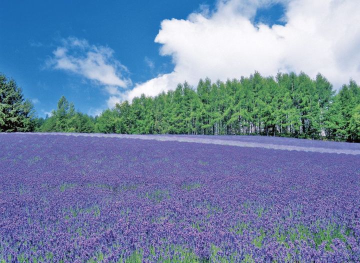 大地を紫一色に染める富良野のラベンダー畑は、北海道の初夏を代表する風景。富良野のラベンダーを全国に広めるきっかけとなったのが、「ファーム富田(ふぁーむとみた)」のなかでも最も歴史がある畑「トラディショナルラベンダー畑」です。見ごろは7月上~中旬。畑の上まで上れば、ラベンダーの向こうに田園風景と十勝岳連峰が一望できますよ。