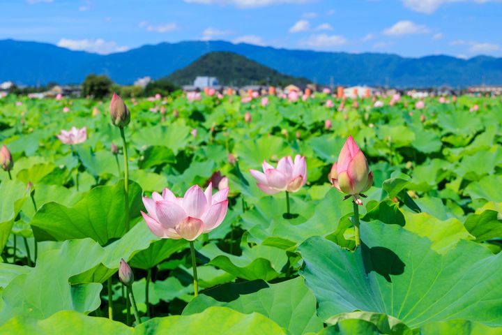 Spot.7【7月中旬〜8月上旬】古代の宮跡を清楚なハナハスが美しく彩る/藤原宮跡(奈良県/橿原市)