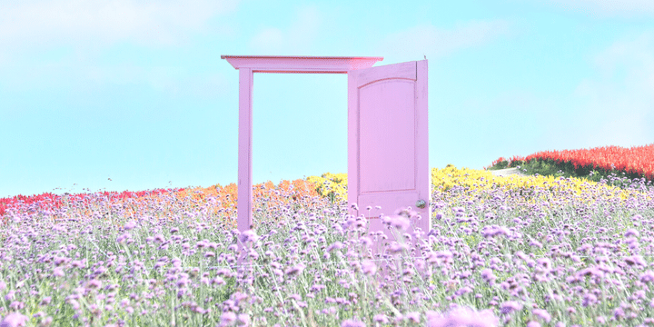 花畑として美しいのはもちろん、SNSを中心に注目を集めているのが、花のじゅうたんのなかに置かれた‟ピンクの扉”。春は菜の花畑、秋はケイトウやサルビアなどカラフルな花畑をバックに、フォトジェニックな写真が撮れるとあって人気なんです♪