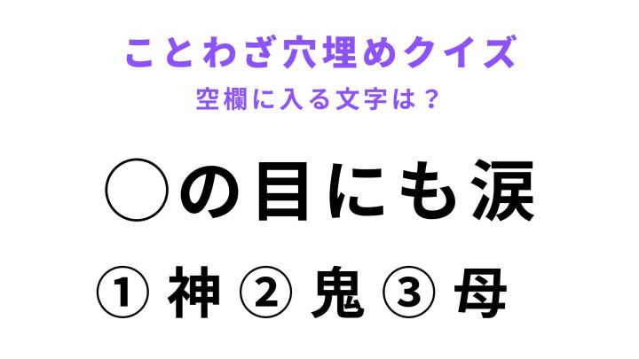 「◯の目にも涙」の空欄に文字を入れると、あることわざが完成します。