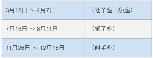 2025年3月には水星逆行が発生することがわかっており、3月15日 〜 4月7日(牡羊座→魚座)へと動きます。次に当てはまる人は水星逆行の影響を受けやすいと言われているので気をつけましょう。